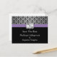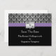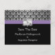 Black Purple Silver Monogram Damask Save The Date Announcement Postcard