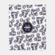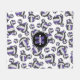 This volleyball team colours fleece blanket designed for girls features a pattern of varied size stylised purple, black and white volleyballs turned every which way - the purple and black volleyball panels are blended with an artsy, girly floral pattern - customise with athlete's name and monogram or jersey number - by katz_d_zynes