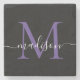 Black Purple Violet Monogram Feminine Script Name Stone Coaster
