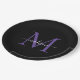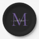 Black Purple Violet Monogram Modern Elegant Script Paper Plate