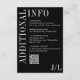 Modern wedding enclosure card featuring a minimalist black design with your header in a large font along the left side and top along with an optional QR Code and your monogram. You may remove the QR code in the design editing tool. This design is simple enough for a formal wedding yet makes a bold statement.