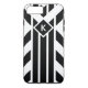 Keep your iPhone 8 Plus/7 Plus safe from shocks with an impact resistant Case-Mate Tough case featuring a striking black and white geometric pattern with black quadrilaterals aligned in stripes. The parallelograms angle towards a black diamond outlined with white in the upper third of the image. The diamond contains a customisable monogram.
