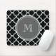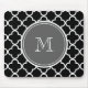 Black Quatrefoil Pattern, Grey Monogram Mouse Pad