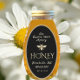 Simple Gold Border with a Mediaeval Heraldic Bee Design and the word "HONEY" in a decorative metallic gold font. Apiary name and location in an elegant script font. Fits 16 oz Classic Queenline Honey Jars.