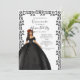 Black quinceanera illustration invitation for quince parties. Ideal art design for quinceaneras who will be wearing a black dress or will be having a black quinceanera theme. The illustration features a girl wearing a big red rose as a crown. Add your quince party information on this Spanish-style quince invitation to give out to guests.