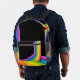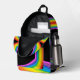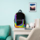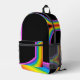 Go back to school in style with this rainbow print backpack. Fun book bag features cool abstract rainbows in multiple sizes, against a black background , with black details. Original digital artwork by Buttercup's Clothing and Collectables.