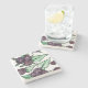 The coasters are gorgeous, a quality feel and heavy weight. They look like a precious archeological find. A rustic stone juxtaposed with a modern floral black and white print. I like the way the print goes slightly imperfect on the cut stone edges giving them a kind-of natural beauty.