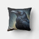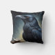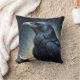 Black Raven Throw Pillow. © Dark Heart Desires. A throw pillow with a black Raven on a branch with some paper that says Nevermore.