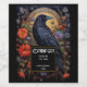 Personalised wine making bottle labels with a black crow. A yellow arch behind.