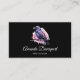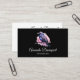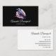 Business cards with an image of a black crow with purple pink wings. A pink watercolor splatter behind this lovely mystical bird.