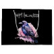 Gift bag with an image of a black crow with purple pink wings. A pink watercolor splatter behind this lovely mystical bird.