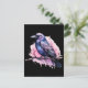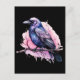 A postcard with an image of a black crow with purple pink wings. A pink watercolor splatter behind this lovely mystical bird.