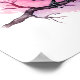Poster with an image of a black crow with purple pink wings. A pink watercolor splatter behind this lovely mystical bird.