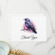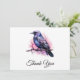 Thank you card with an image of a black crow with purple pink wings. A pink watercolor splatter behind this lovely mystical bird.