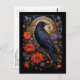Postcard with a black crow perched on a branch surrounded by red flowers. Cool gothic vibe.