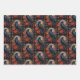 Patterned wrapping paper sheets with a black crow perched on a branch surrounded by red flowers. Cool gothic vibe.