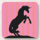 Black Rearing Unicorn (pink striped) Coaster