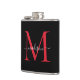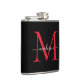 Black Red Burgundy Monogram Stylish Script Name Hip Flask