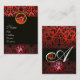 BLACK RED DAMASK FLORAL MONOGRAM ,Ruby Gemstone Business Card