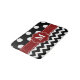 Show off your style in a fun way with this black and red polka dots and chevron monogram bathmat.