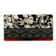 PERSONALIZE this pretty stylish elegant sophisticated girly feminine black & white vintage damask floral flower pattern & black lace material ribbon on a dark brick red and black , with your own text, name or monogram, initial .