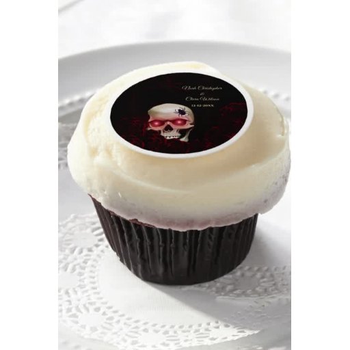 Black floral dark moody gothic skull red roses - scary and spooky Halloween Wedding Wine Bottle Labels.