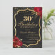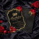Celebrate in unforgettable style with this dramatic black and gold 30th birthday invitation. Featuring an elegant ornamental frame, rich red florals, and a luxe-inspired layout, this design is perfect for a sophisticated evening celebration.