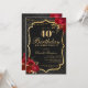 Celebrate in unforgettable style with this dramatic black and gold 40th birthday invitation. Featuring an elegant ornamental frame, rich red florals, and a luxe-inspired layout, this design is perfect for a sophisticated evening celebration.