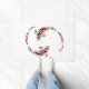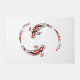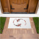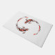 A door mat with a pair of black and red koi fish swimming and circling around each other. Simple minimalist design.
