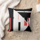 Black, Red on White Diagonal Geometric Design Cushion