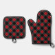 Black Red Plaid Check Pattern Oven Mitt & Pot Holder Set
