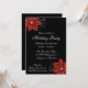 Black Red Poinsettia Swirls Holiday Party Invitation