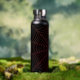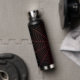 Black red spider web Halloween pattern Water Bottle. Drinkware with Spooky Halloween cobweb gothic design and custom black background.