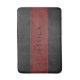 An elegant black and red image of leather is stitched with a customisable monogram.