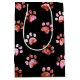 Black Red Textured Paw Print Pattern Medium Gift Bag
