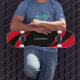 Black and red wavy lines with black centre and calligraphy Skateboard.