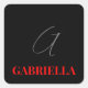 Black Red Your Name Initial Monogram Modern Square Sticker