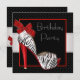 Elegant red zebra birthday party invitations. This pretty red and black zebra high heel shoe birthday party invitation is easily customised for your event by simply choosing the "Customise it!" button to begin adding your event details, font style, font size & colour, and wording. Please note - all of the card and invitation designs you will find on Zazzle are printed graphics with no actual jewels, bows, raised, embossed, or added parts or pieces.