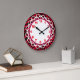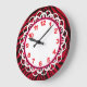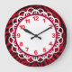A beautiful clock for those who love animal prints . . . including those animal prints that are a little more unusual! A black and red zebra stripe print covers the base of the clock, while the white face is encompassed with colours that coordinate well with the print - red numbers, white lace, and hot pink/black border rings.