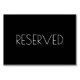 Plain and simple, black and white, reserved seating card. Thin, white printed "reserved" wording is printed on both sides of flat cards. Neutral theme for any type of gathering, elegant or casual.