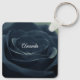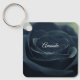 Personalised keychain with a photograph with a mystical mysterious style. A single black rose with a gothic vibe.