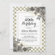 Black Rose Flora Sage & White Chequered Birthday Invitation