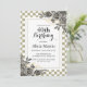 This elegant flora birthday invitation features gold and black rose flowers with leaves arrangement on the white and sage chequered backdrop.