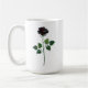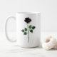 Symbolic, artistically drawn black rose with green stems and leaves on white background. Black rose.