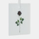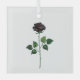 Symbolic, artistically drawn black rose with green stems and leaves on white background. Black rose.