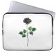 Symbolic, artistically drawn black rose with green stems and leaves on white background. Black rose.