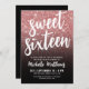 Rose Gold Glitter Black Gradient Sweet Sixteen Birthday Invitation Modern Elegant Script
