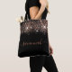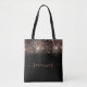 Black rose gold glitter monogram script tote bag