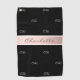 Black background, with a rose gold ribbon. Personalise and add your monogram letters, initials and name. Blush, rose gold coloured letters. The name is written with a modern hand lettered style script. The monogram as a background pattern.