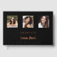 A black background, rose gold foil text.  Personalise and add 3 photos, your name, class of, and school name.